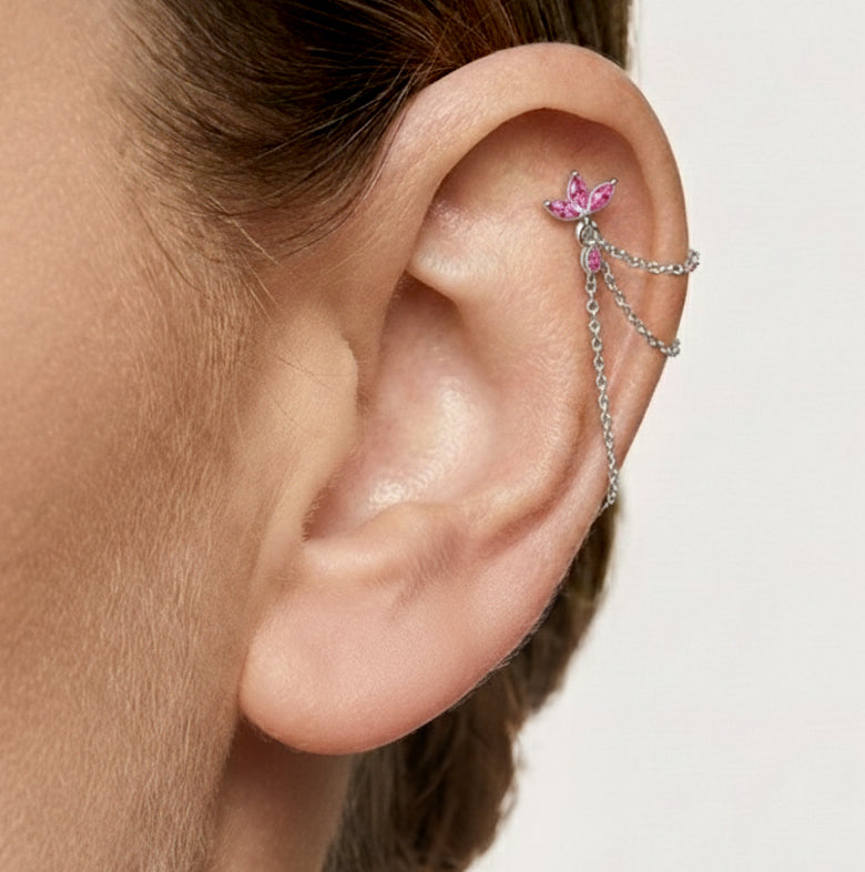A marquise-cut bloom anchors fine gold chains that fall in soft, luminous lines along the curve of your ear. It lives in the space between the everyday and the extraordinary, glimmering as you move. Elegant, fluid, quietly assured. Wear it on ordinary Tuesdays. Wear it on the days that change everything.
