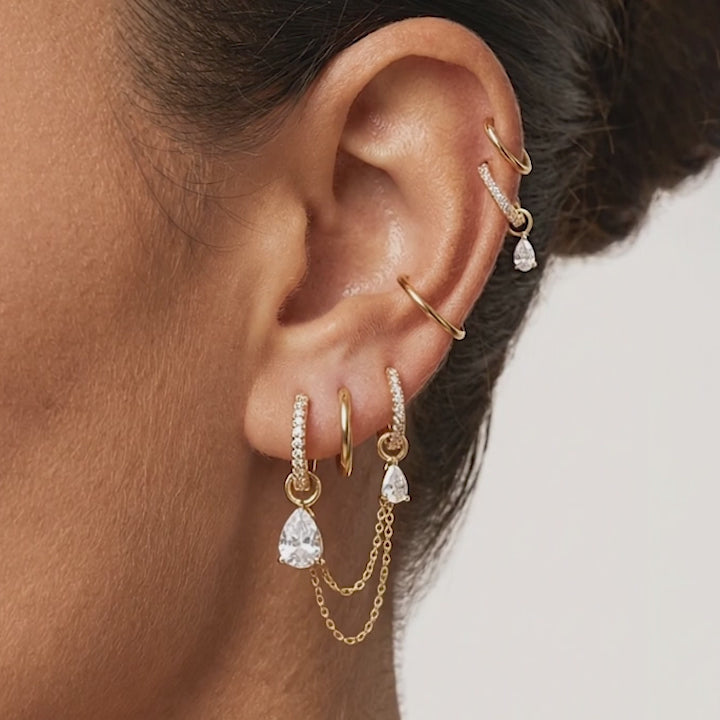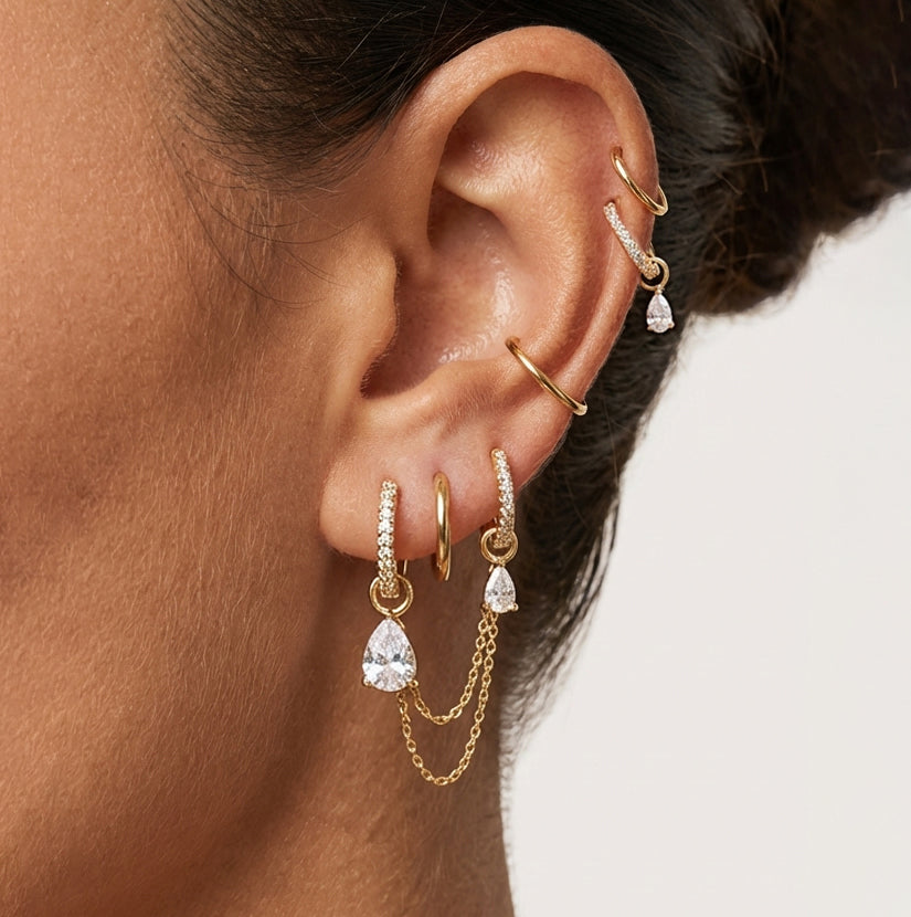 Chain Earrings - Elegant Hoops & Teardrop Pendants Ear Stack