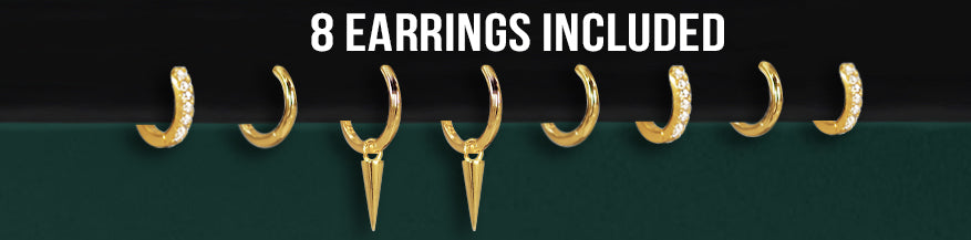 Dainty hoop earrings inspired by Yelena Belova’s iconic stack, this bestselling set adds edgy elegance to your ear piercings with 18k Gold or Platinum finishes and sparkling Zirconia gems. Crafted using tarnish-resistant metals like implant-grade titanium and thick gold plating, these hoop earrings are lightweight, stackable, and perfect for everyday wear.