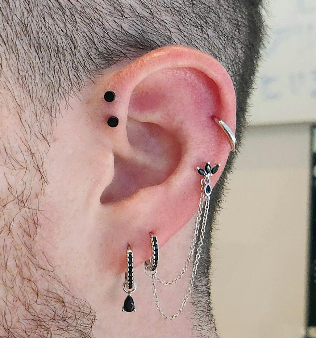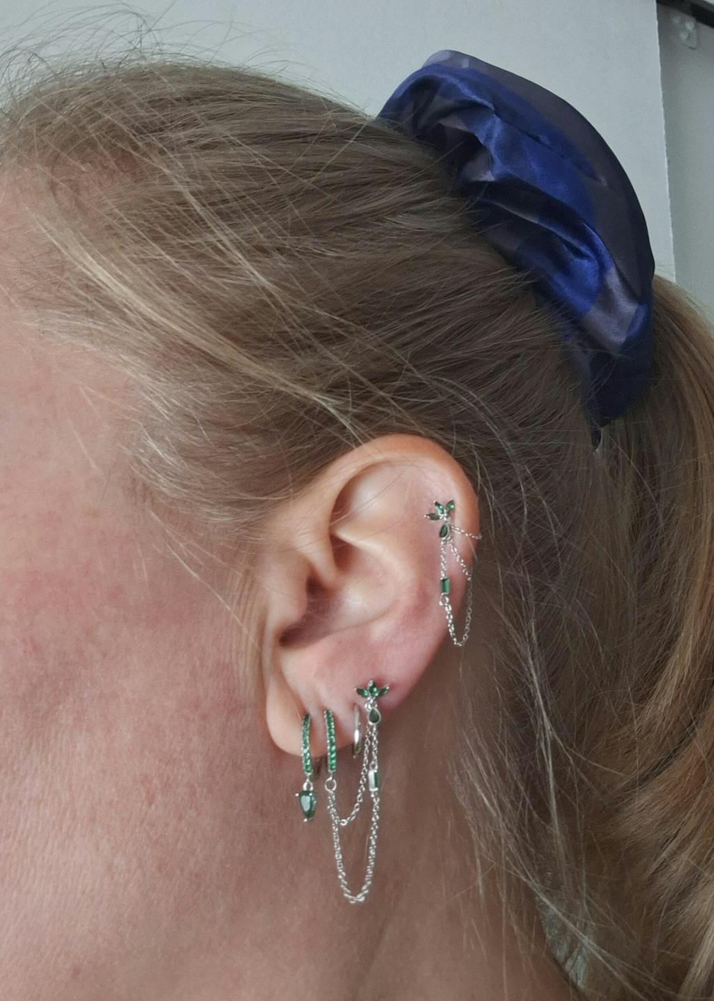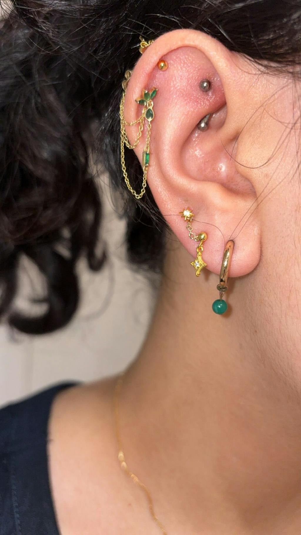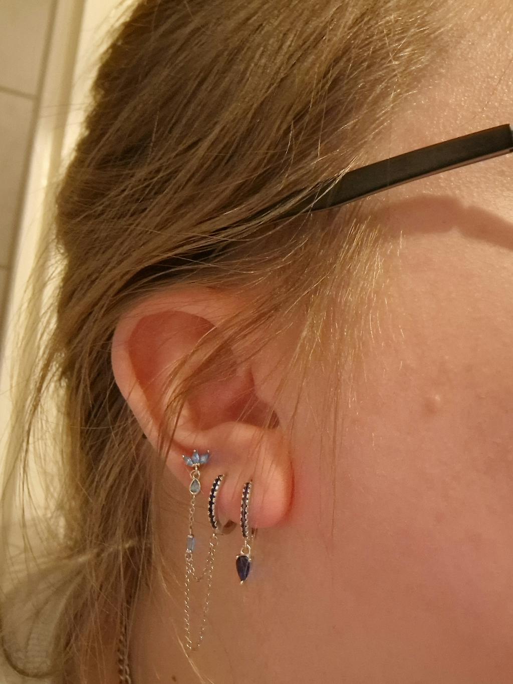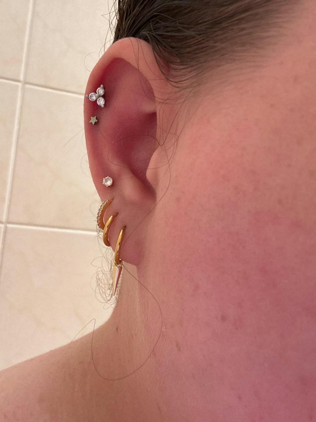 The only downside (in my opinion), these are FRAGILE ! Especially the bottom one, since the part that goes into the ear is really thin, so easy to bend. When you have a lot of piercing, it can be a bit of a pain to remove all of them before going into the shower, before sleeping or going to the gym. But that’s on me, I kinda expected titanium to be ok to never remove and didn’t check the care guide. But, I will do it since this is the most beautiful earring set I ever owned.